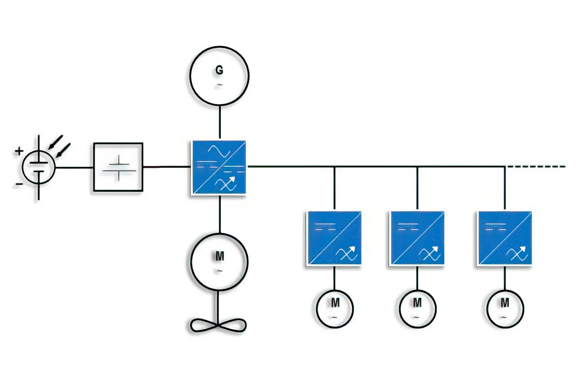 L’efficacité est encore améliorée par les réseaux reliés en courant continu, ce qui permet aux systèmes d’utiliser diverses sources d’énergie, notamment des générateurs à arbre, des batteries ou des piles à combustible.